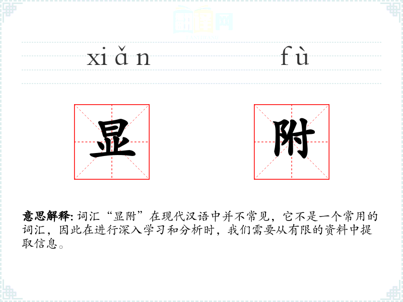 词汇“显附”在现代汉语中并不常见,它不是一个常用的词汇,因此在进行深入学习和分析时,我们需要从有限的资料中提取信息。