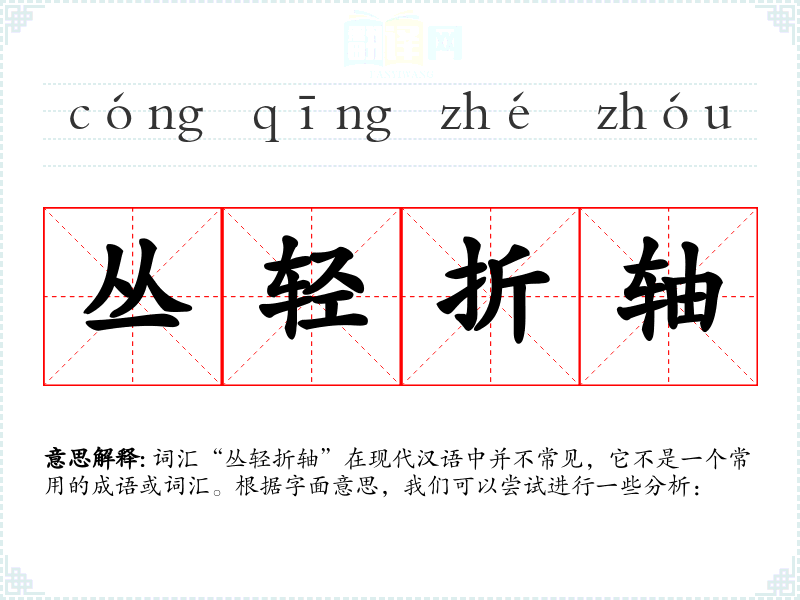 词汇“丛轻折轴”在现代汉语中并不常见,它不是一个常用的成语或词汇。根据字面意思,我们可以尝试进行一些分析: