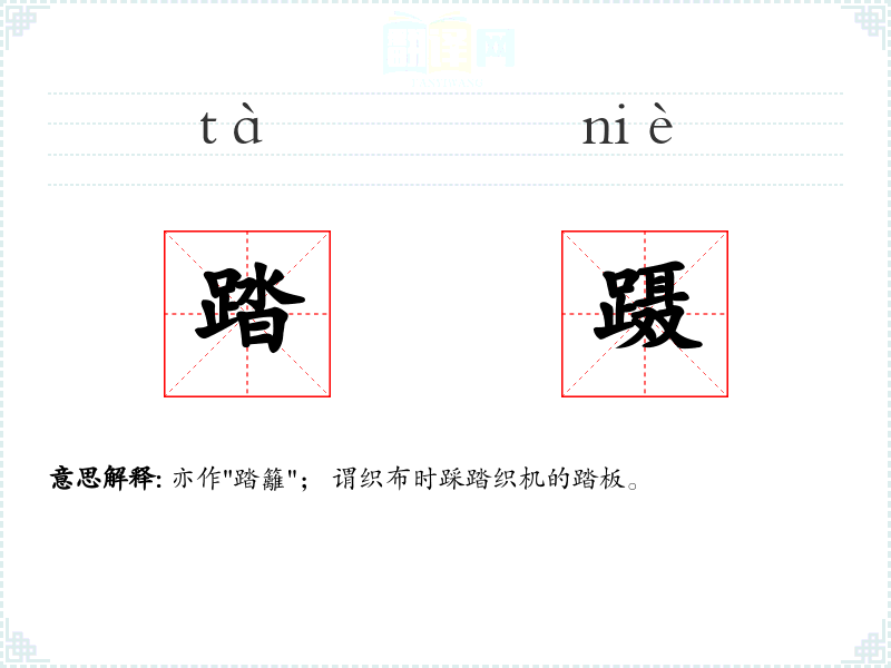 亦作"踏籬"; 谓织布时踩踏织机的踏板。