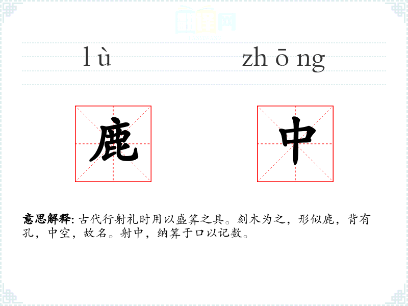 古代行射礼时用以盛筭之具。刻木为之,形似鹿,背有孔,中空,故名。射中,纳筭于口以记数。