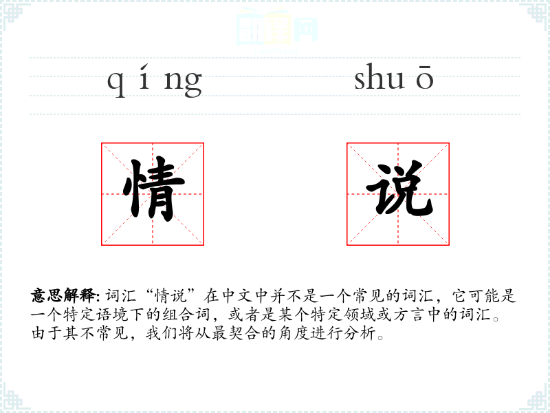 - 反义词:无(由于“情说”不是一个常见词汇,很难找到直接的反义词)