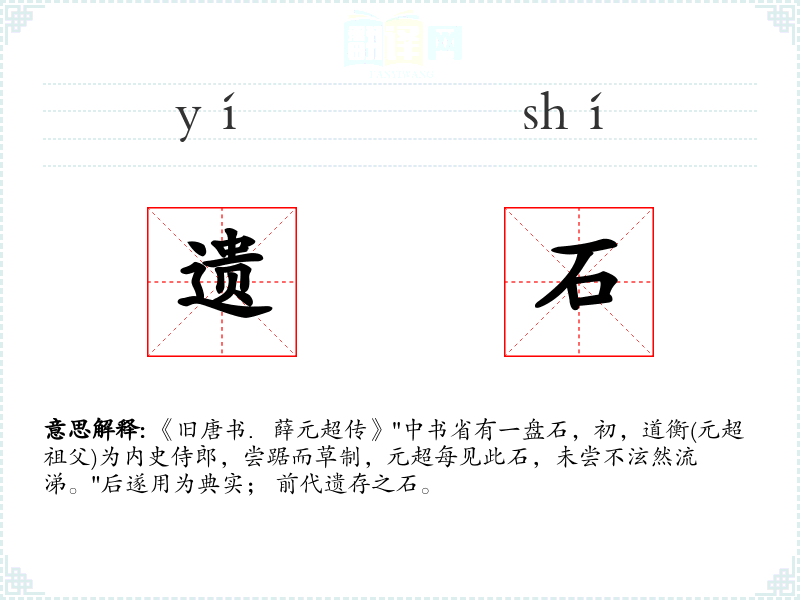 《旧唐书.薛元超传》"中书省有一盘石,初,道衡(元超祖父)为内史侍郎,尝踞而草制,元超每见此石,未尝不