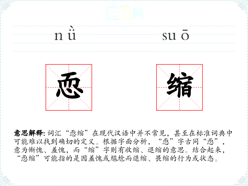 "恧缩"的意思解释、恧缩是什么意思由翻译网汉语词典查词提供。