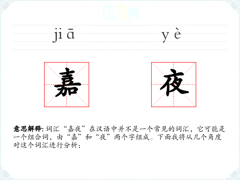 结合起来,“嘉夜”可以理解为一个美好的夜晚,或者是对夜晚的赞美。