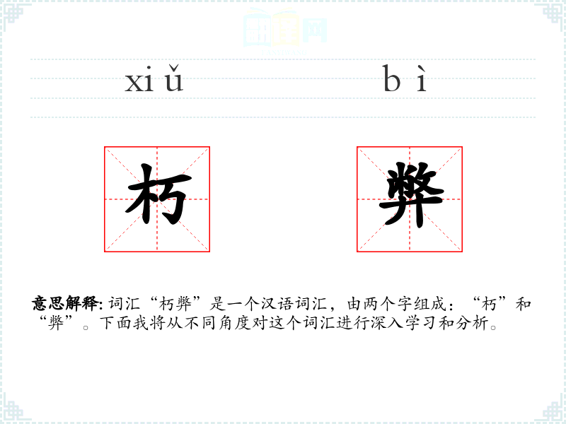 - 词源:“朽”源自古代汉语,意为腐烂;“弊”源自古代汉语,意为弊端、不良。
