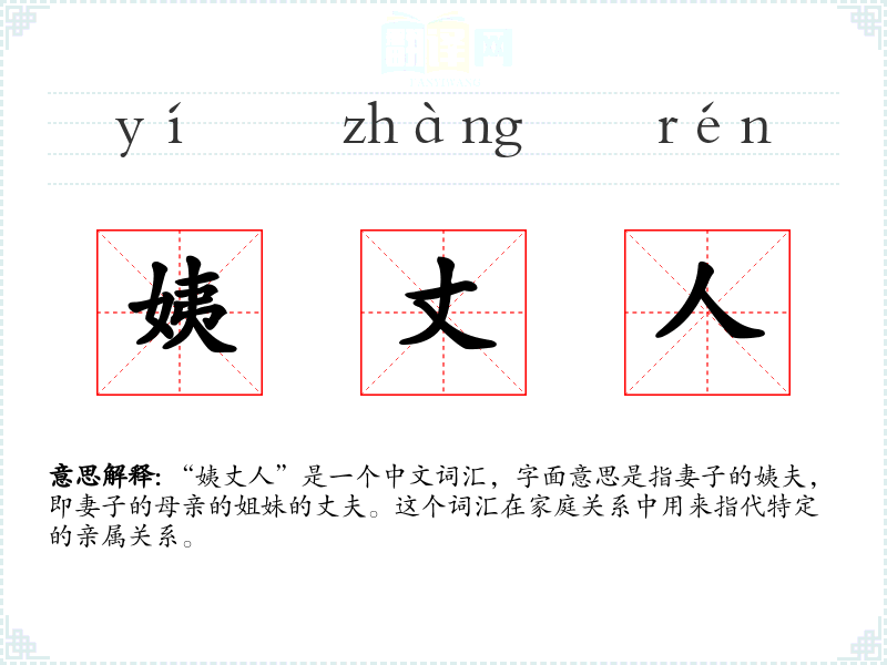 在**文化中,亲属关系非常重要,称呼和尊重长辈是基本的社交礼仪。因此,“姨丈人”这个词汇体现了对长辈的尊重和家庭关系的重视。