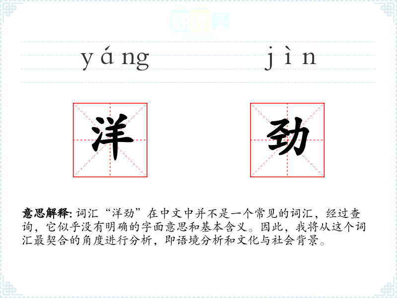 由于“洋劲”不是一个标准词汇,我们无法给出确切的基本定义。