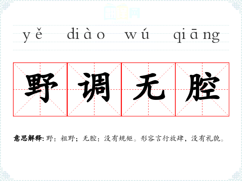 野:粗野;无腔:没有规矩。形容言行放肆,没有礼貌。