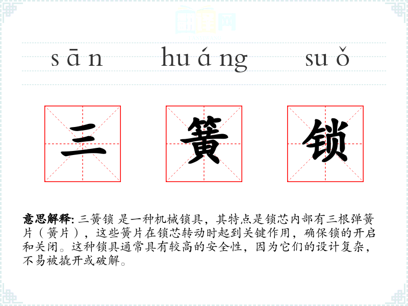 "三簧锁"的意思解释、三簧锁是什么意思由翻译网汉语词典查词提供。