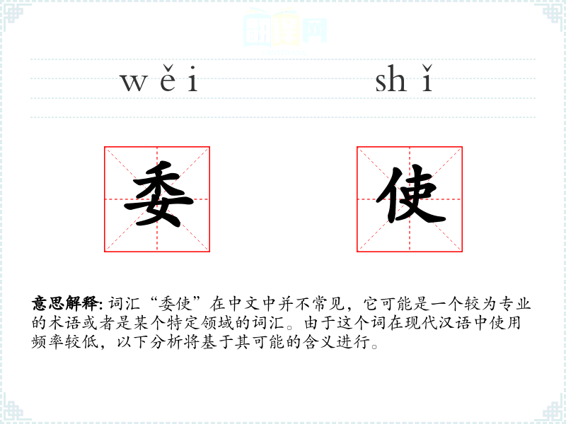 词汇“委使”在中文中并不常见,它可能是一个较为专业的术语或者是某个特定领域的词汇。由于这个词在现代汉语中使用频率较低,以下分析将基于其可能的含义进行。