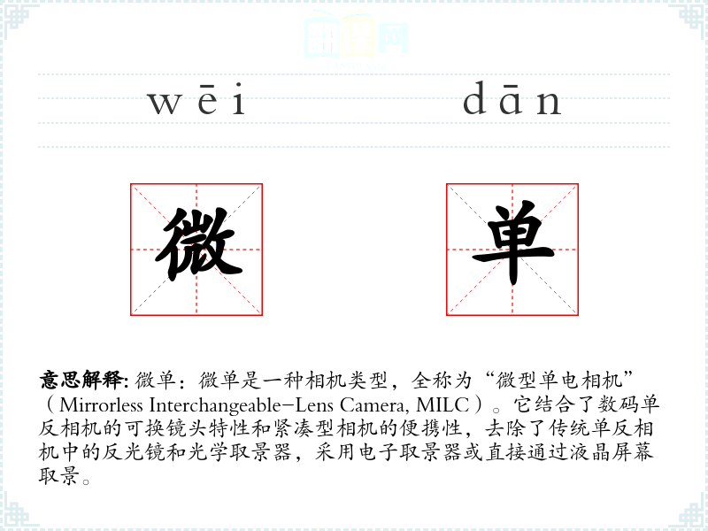 "微单"的意思解释、微单是什么意思由翻译网汉语词典查词提供。