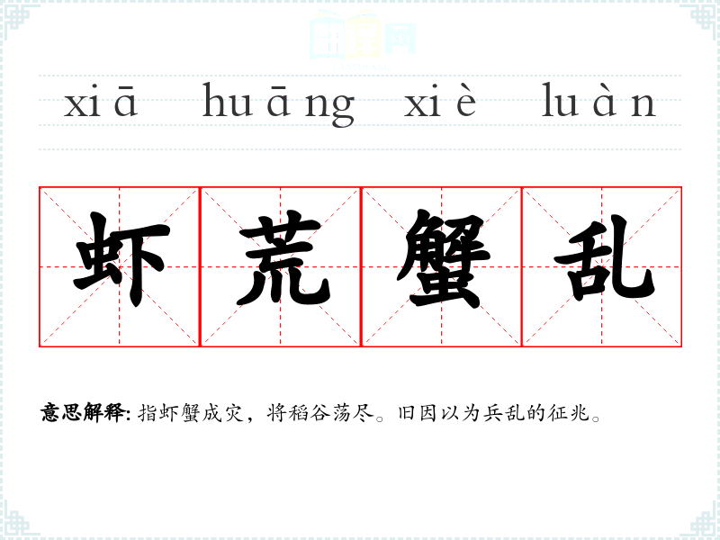 指虾蟹成灾,将稻谷荡尽。旧因以为兵乱的征兆。