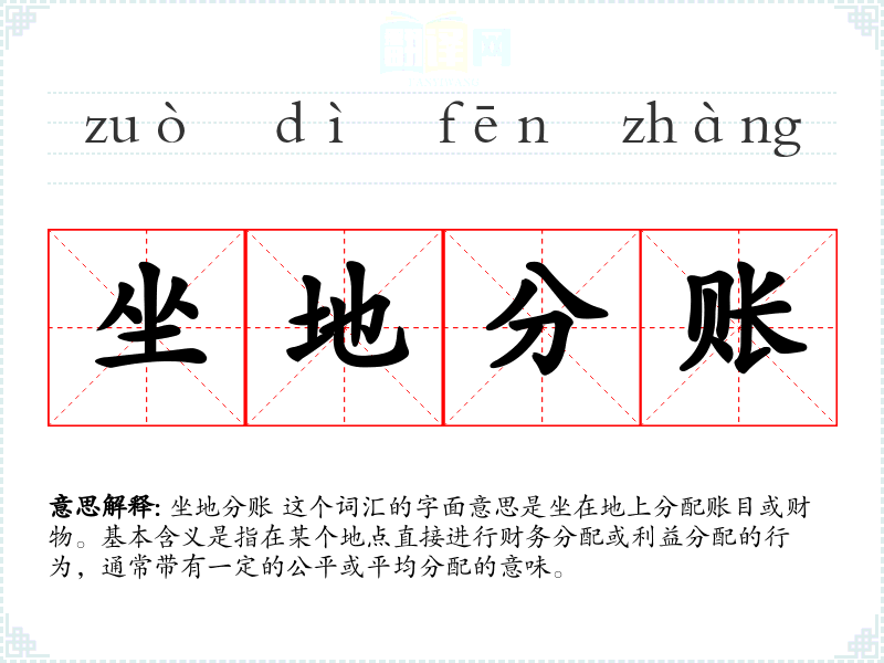 坐地分账 这个词汇的词源较为直接,由“坐地”和“分账”两个词组合而成。在古代,人们可能真的在地上进行账目的分配,但随着时间的推移,这个词汇更多地被用来比喻公平分配的行为。