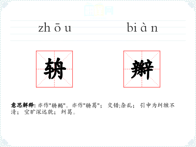 亦作"辀輵"。亦作"辀葛"; 交错;杂乱; 引申为