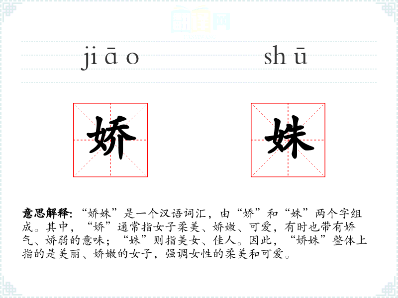 - 专业领域:在文学研究或古代文化研究中,“娇姝”可能被用来分析古代文学作品中的女性形象。