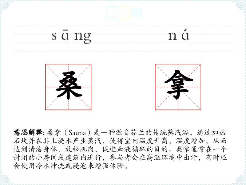"桑拿"的意思解释、桑拿是什么意思由翻译网汉语词典查词提供。