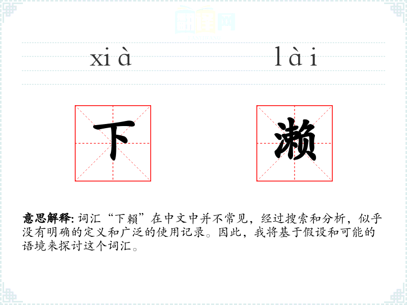 词汇“下賴”在中文中并不常见,经过搜索和分析,似乎没有明确的定义和广泛的使用记录。因此,我将基于假设和可能的语境来探讨这个词汇。