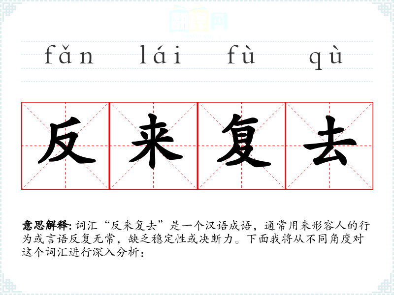 词汇“反来复去”是一个汉语成语,通常用来形容人的行为或言语反复无常,缺乏稳定性或决断力。下面我将从不同角度对这个词汇进行深入分析: