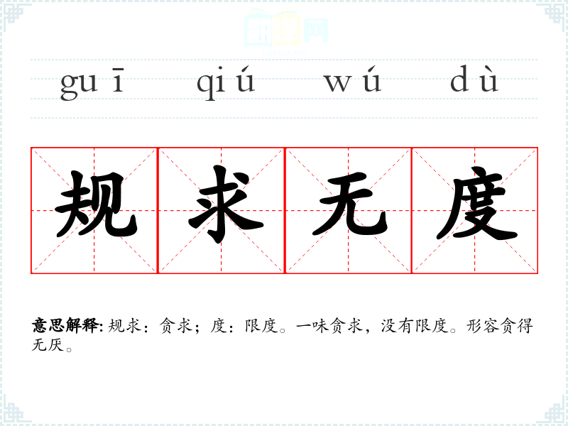规求:贪求;度:限度。一味贪求,没有限度。形容