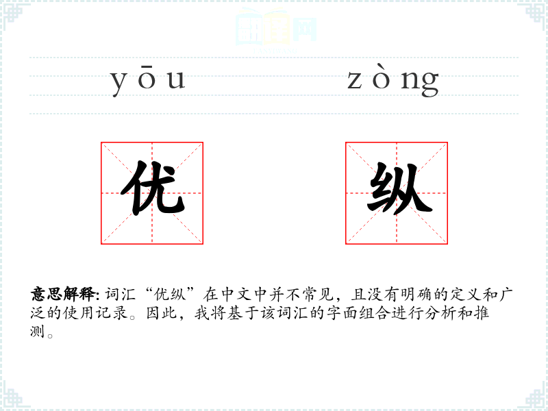 尽管“优纵”不是一个常用词汇,通过对其字面意义和可能的语境进行分析,我们可以理解它在特定情境中的含义和用法。在语言学习和表达中,了解和掌握这样的词汇有助于丰富我们的表达方式和理解能力。