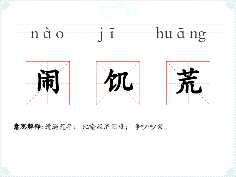 遭遇荒年; 比喻经济困难; 争吵;吵架。