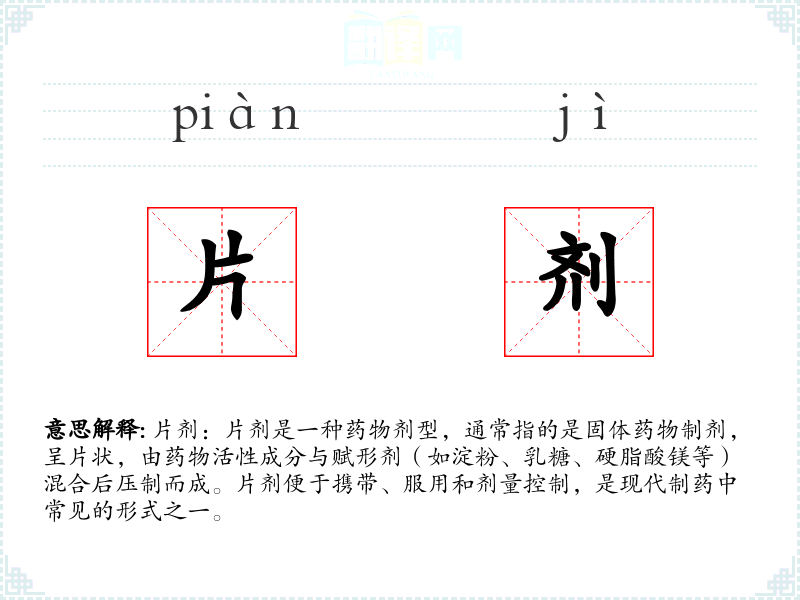 片剂的分字解释