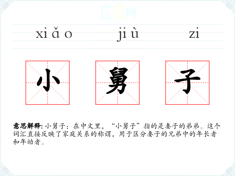 - 反义词:大舅子(妻子的哥哥)