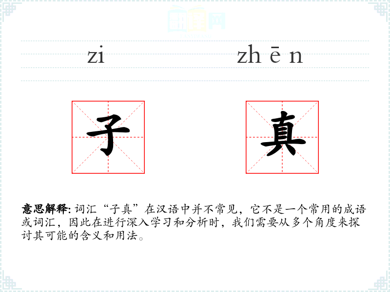 词汇“子真”在汉语中并不常见,它不是一个常用的成语或词汇,因此在进行深入学习和分析时,我们需要从多个角度来探讨其可能的含义和用法。