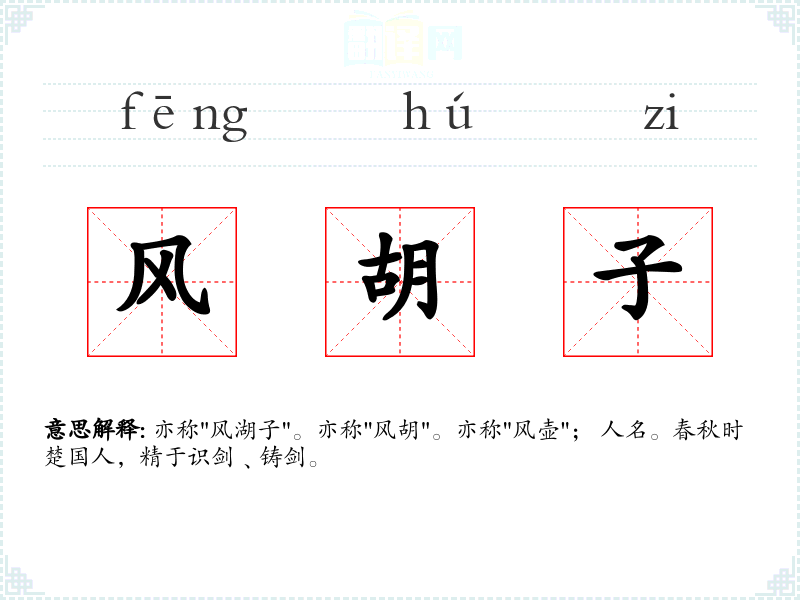 亦称"风湖子"。亦称"风胡"。亦称"风壶"; 人名。春秋时楚国人,精于识剑﹑铸剑。
