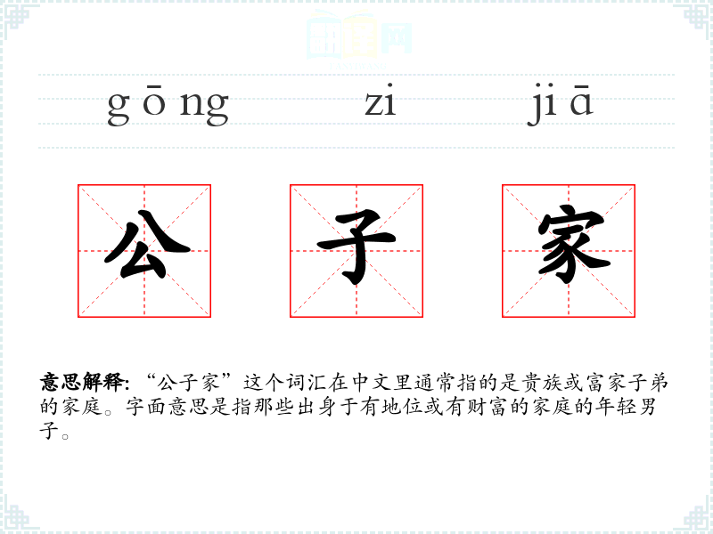“公子家”这个词汇在中文里通常指的是贵族或富家子弟的家庭。字面意思是指那些出身于有地位或有财富的家庭的年轻男子。