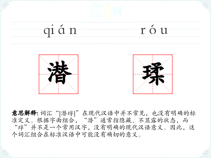 由于“潜琈”不是一个标准词汇,我们无法提供一个确切的基本定义。它可能是一个特定领域或方言中的词汇,或者是某个特定文本中的创造性用法。