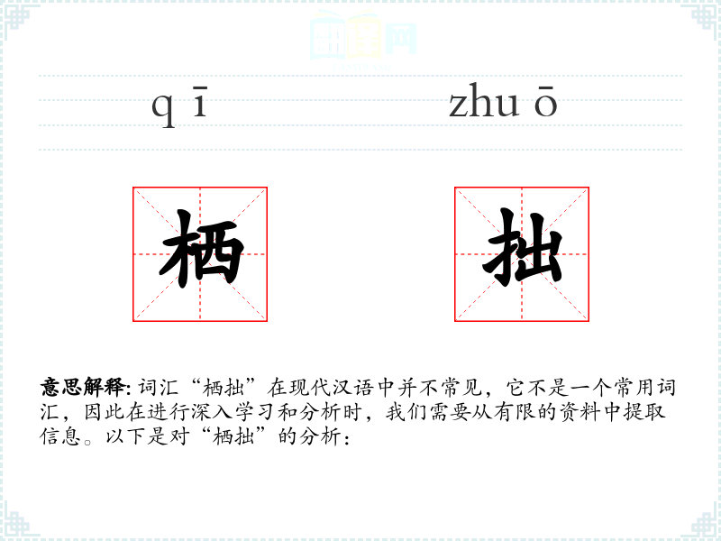 词汇“栖拙”在现代汉语中并不常见,它不是一个常用词汇,因此在进行深入学*和分析时,我们需要从有限的资料中提取信息。以下是对“栖拙”的分析: