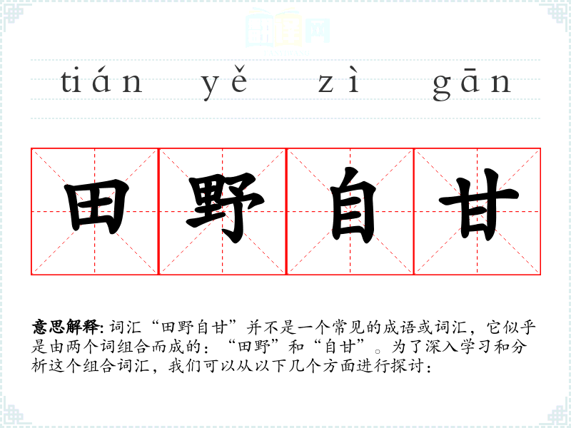 - 在**传统文化中,田园生活常被视为理想的生活状态,与“田野自甘”相呼应。