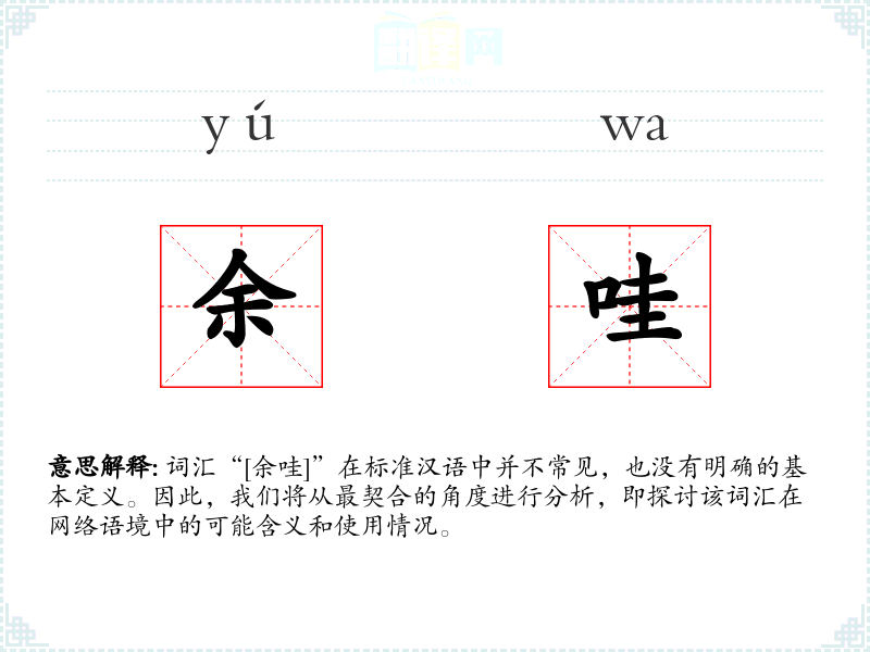 词汇“[余哇]”在标准汉语中并不常见,也没有明确的基本定义。因此,我们将从最契合的角度进行分析,即探讨该词汇在网络语境中的可能含义和使用情况。