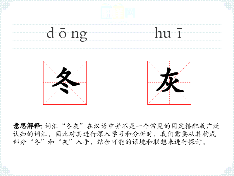 - “冬”和“灰”都是汉语中的基本词汇,没有复杂的词源或演变历史。