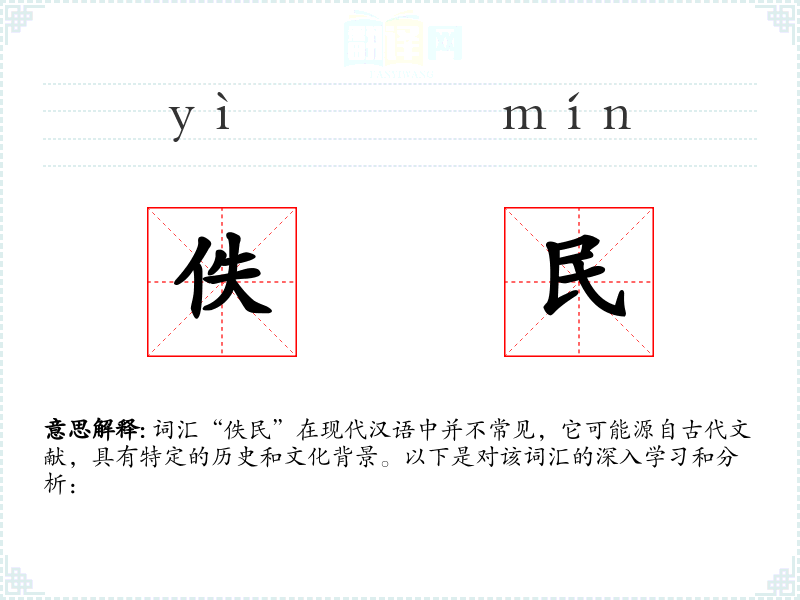 词汇“佚民”在现代汉语中并不常见,它可能源自古代文献,具有特定的历史和文化背景。以下是对该词汇的深入学*和分析: