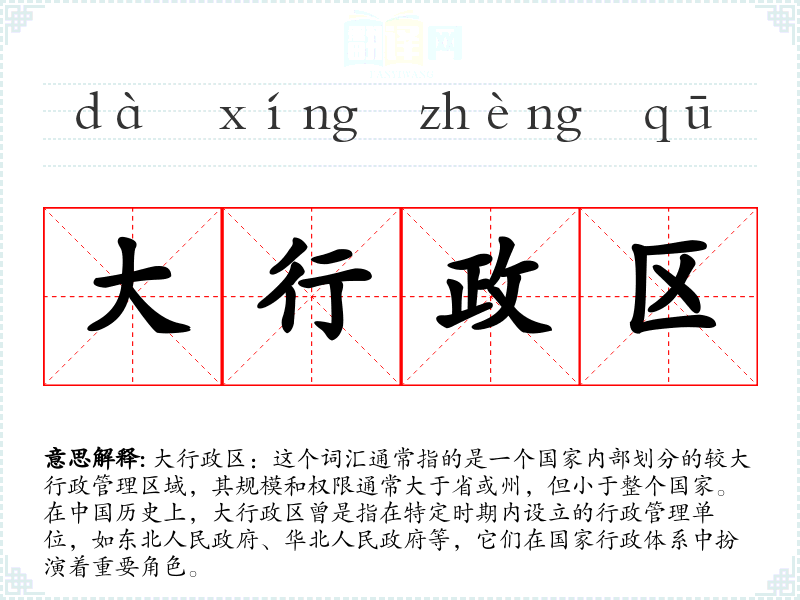 大行政区作为一个词汇,不仅反映了国家行政管理的需要,也体现了对地区特色和历史文化的尊重。在语言学*和表达中,理解这个词的含义和用法,有助于更准确地描述和分析不同地区的特点和变化。