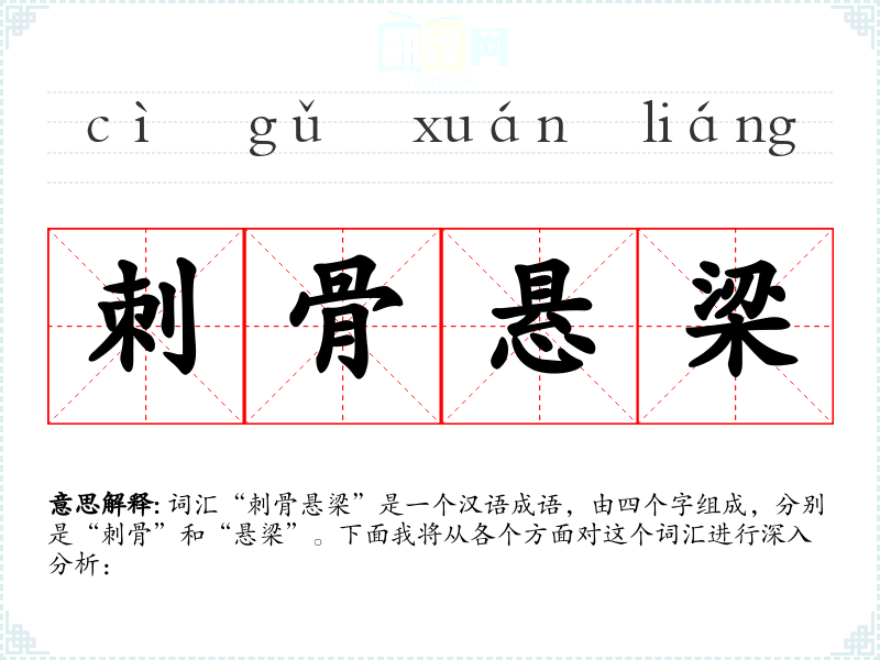 词汇“刺骨悬梁”是一个汉语成语,由四个字组成,分别是“刺骨”和“悬梁”。下面我将从各个方面对这个词汇进行深入分析: