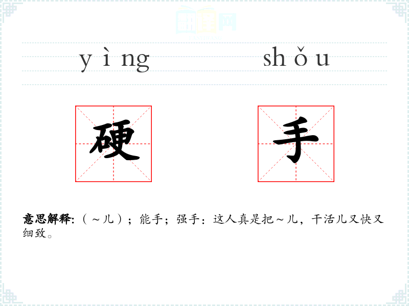 (~儿);能手;强手:这人真是把~儿,干活儿又快又细致。