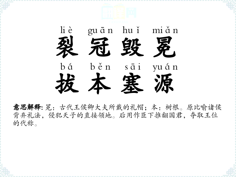 "裂冠毁冕,拔本塞源"的意思解释、裂冠毁冕,拔本塞源是什么意思由翻译网汉语词典查词提供。