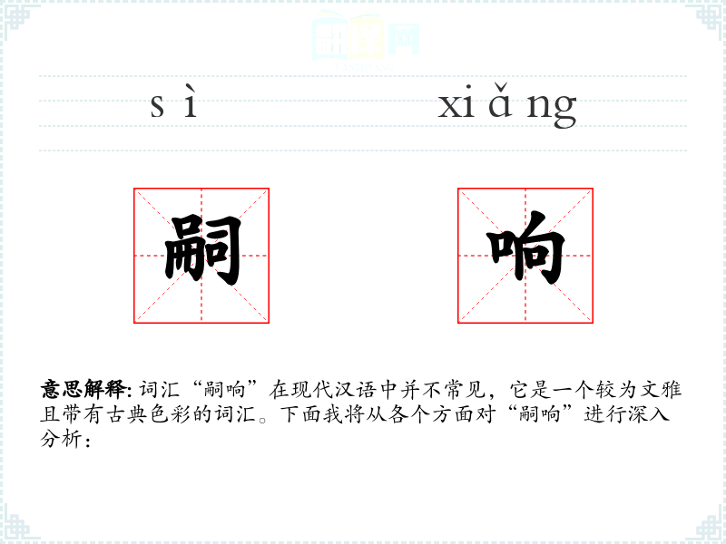 词汇“嗣响”在现代汉语中并不常见,它是一个较为文雅且带有古典色彩的词汇。下面我将从各个方面对“嗣响”进行深入分析: