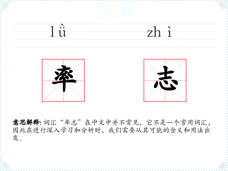 词汇“率志”在中文中并不常见,它不是一个常用词汇,因此在进行深入学习和分析时,我们需要从其可能的含义和用法出发。