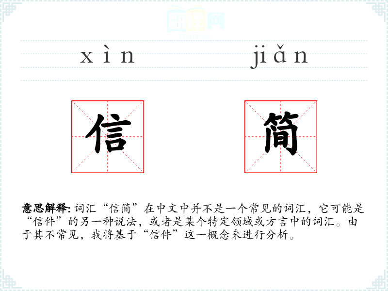 词汇“信简”在中文中并不是一个常见的词汇,它可能是“信件”的另一种说法,或者是某个特定领域或方言中的词汇。由于其不常见,我将基于“信件”这一概念来进行分析。
