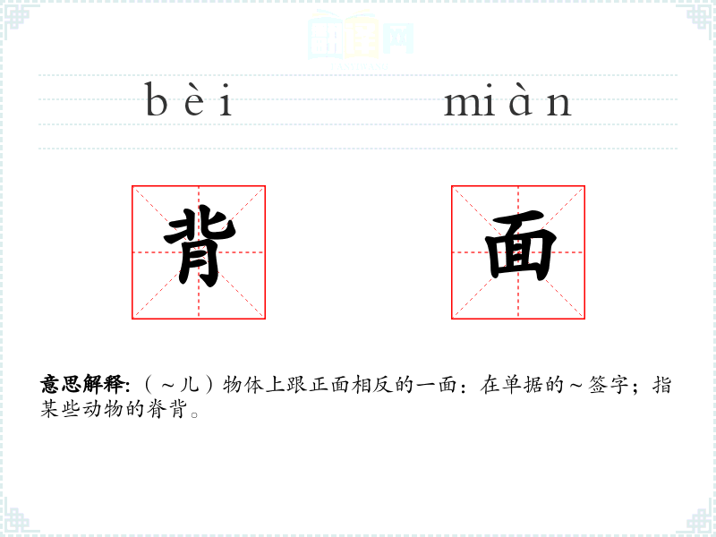 背面的拼音