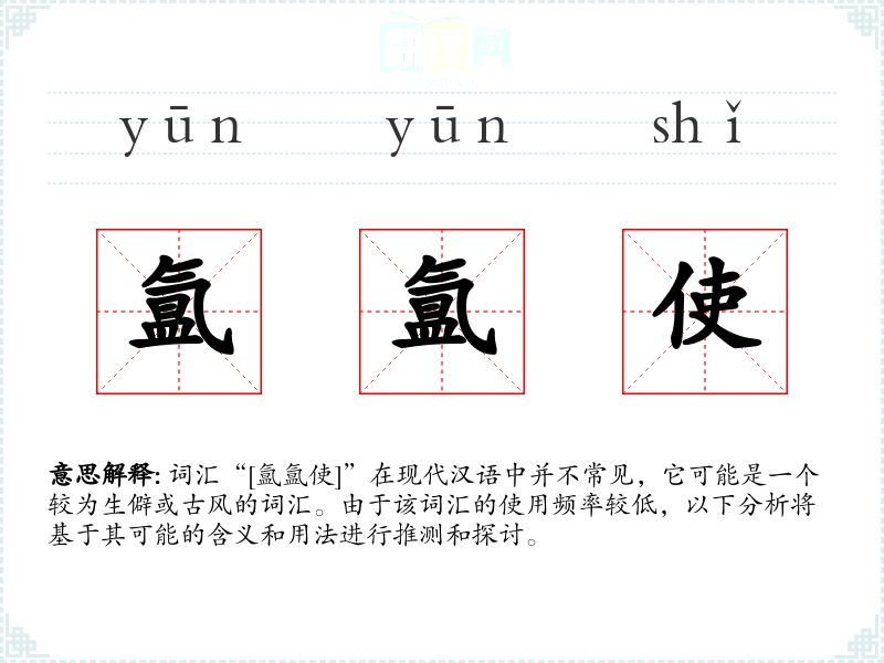 词汇“[氲氲使]”在现代汉语中并不常见,它可能是一个较为生僻或古风的词汇。由于该词汇的使用频率较低,以下分析将基于其可能的含义和用法进行推测和探讨。