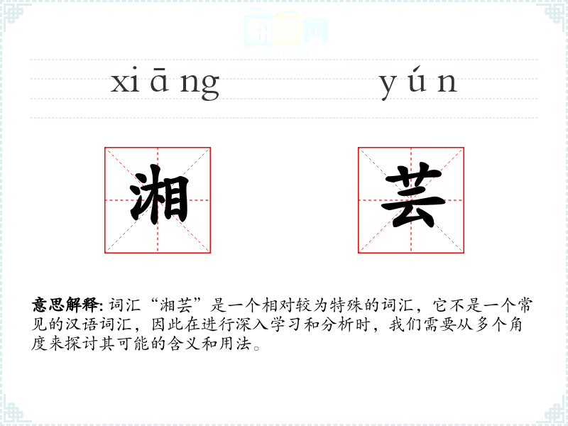 词汇“湘芸”是一个相对较为特殊的词汇,它不是一个常见的汉语词汇,因此在进行深入学习和分析时,我们需要从多个角度来探讨其可能的含义和用法。