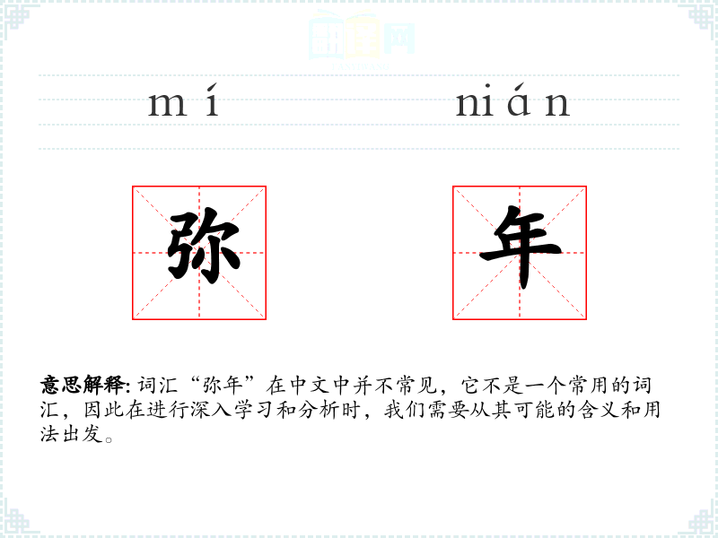 词汇“弥年”在中文中并不常见,它不是一个常用的词汇,因此在进行深入学*和分析时,我们需要从其可能的含义和用法出发。