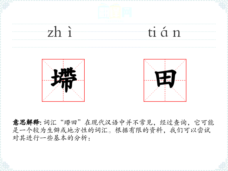 词汇“墆田”在现代汉语中并不常见,经过查询,它可能是一个较为生僻或地方性的词汇。根据有限的资料,我们可以尝试对其进行一些基本的分析:
