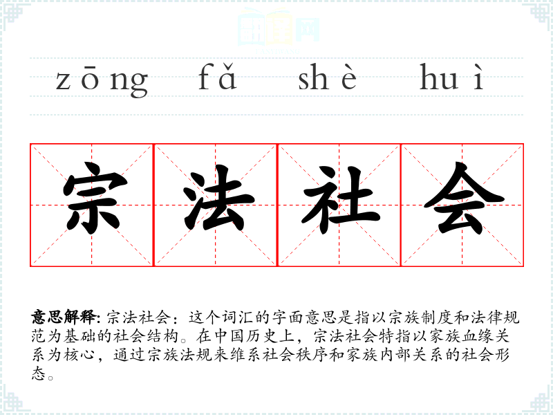 宗法社会:这个词汇的字面意思是指以宗族制度和法律规范为基础的社会结构。在**历史上,宗法社会特指以家族血缘关系为核心,通过宗族法规来维系社会秩序和家族内部关系的社会形态。