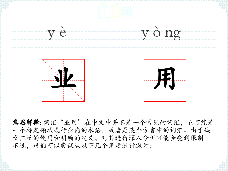 由于“业用”不是一个常见的词汇,个人可能很少有机会在日常生活中使用或遇到这个词汇。